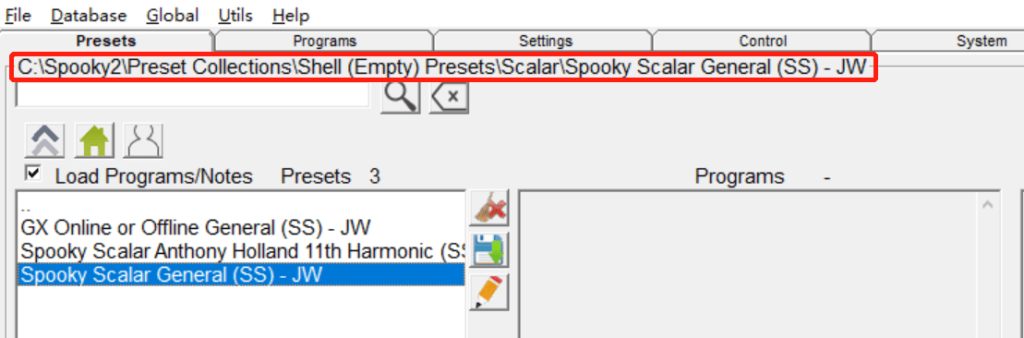 Étape 1 : Ouvrez le logiciel Spooky2, et allez dans l’onglet « Presets ».