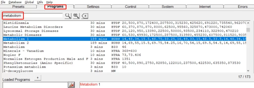 Étape 3 : Allez dans l’onglet « Programs » et utilisez « metabolism » (métabolisme) comme mot-clé pour trouver des programmes apparentés.