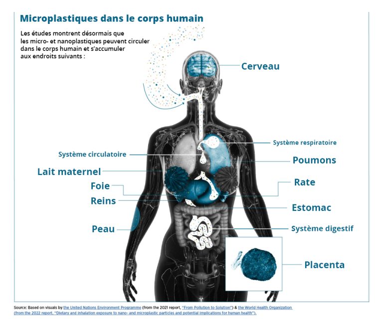 Nous savons donc maintenant que les microplastiques peuvent pénétrer dans notre corps, mais que se passe-t-il ensuite ? Des chercheurs ont déjà trouvé ces minuscules morceaux de plastique dans le sang, les poumons, le foie, les reins et même le placenta. Cela signifie qu’ils peuvent se déplacer à l’intérieur de notre corps et y rester longtemps.