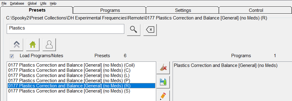 - Naviguez jusqu’à : « \DH Experimental Frequencies\Remote\0177 Plastics Correction and Balance [General] (no Meds) (R) « .