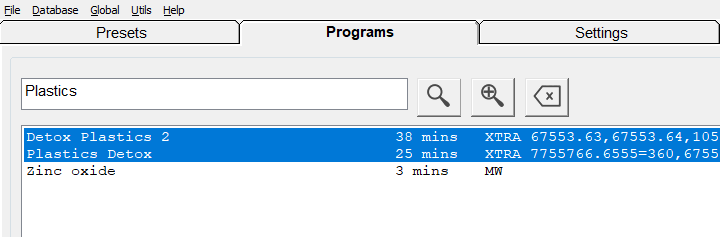 - Vous pouvez choisir et exécuter des programmes tels que : Detox Plastics 2 (XTRA), Detox Plastics (XTRA)