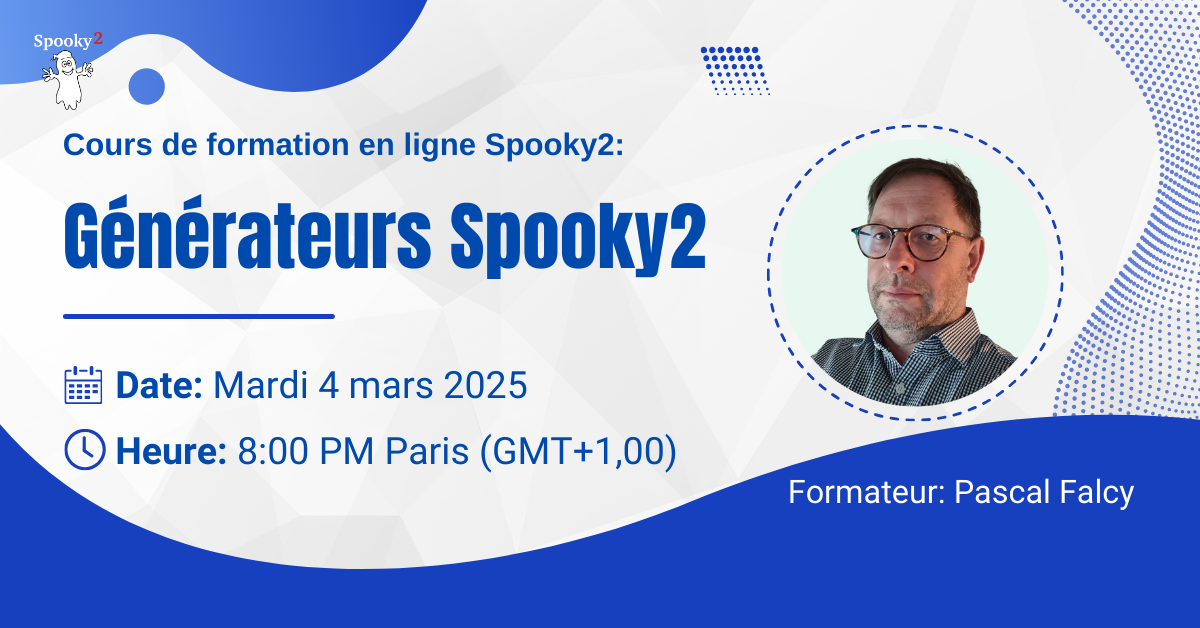 De langue Française, animateur du club Spooky2 Suisse, il donne des formations et ateliers pratiques en présentiel et des formations Web.