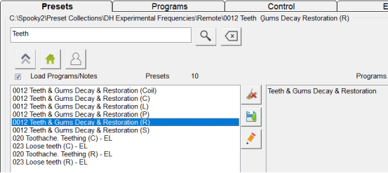 Ouvrez la section DH Experimental Frequencies et sélectionnez DH0012 “Teeth Gums Decay & Restoration (R)”.
