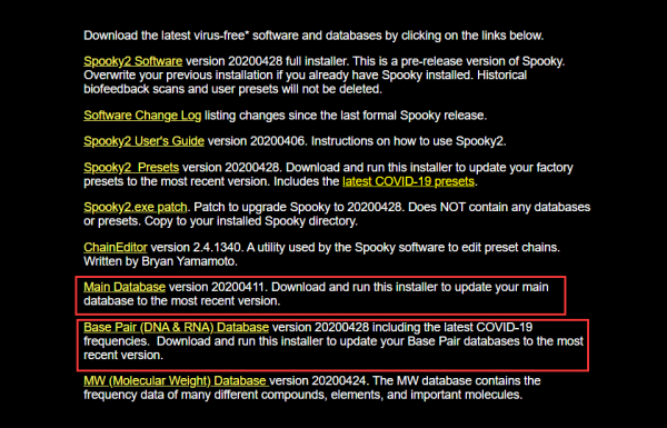 Les bases de données Spooky2 peuvent être mises à jour sur votre installation de Spooky2 sans avoir à télécharger l’installateur complet de 100 mégaoctets de Spooky2. Grâce à ces mises à jour de bases de données, vous obtenez les dernières fréquences des dernières souches de virus émergents.