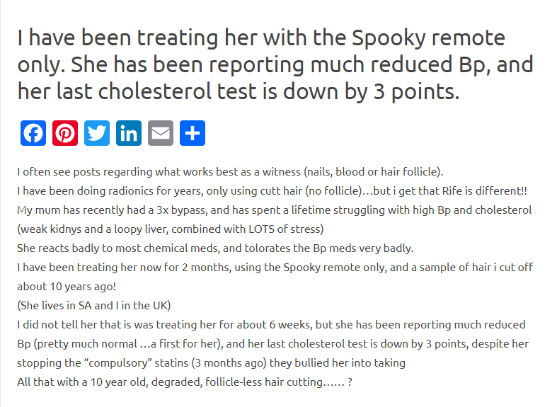 Je fais de la radionique depuis des années, en utilisant uniquement des cheveux coupés (pas de follicule)… mais je comprends que le système Rife soit différent !