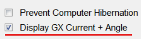 Pour vérifier que le champ scalaire est actif, sélectionnez « Display GX Current + Angle » (Afficher le courant + l'angle du GX) sous l'onglet "System" et déplacez votre main dans le champ ; les fluctuations visibles sur le graphique du panneau Control confirmeront que le champ est présent et fonctionne correctement.