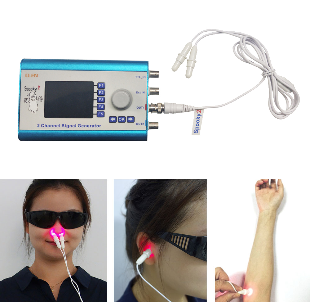 Voici notre Spooky Laser froid jumelé avec 2 x 7mW 650nm lasers pour l’oreille, le nez, le nombril ou l’acupuncture. Ce modèle est livré avec 2 couvertures de rechange en silicone.
