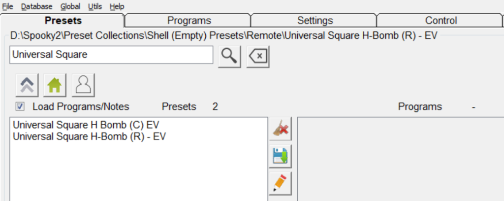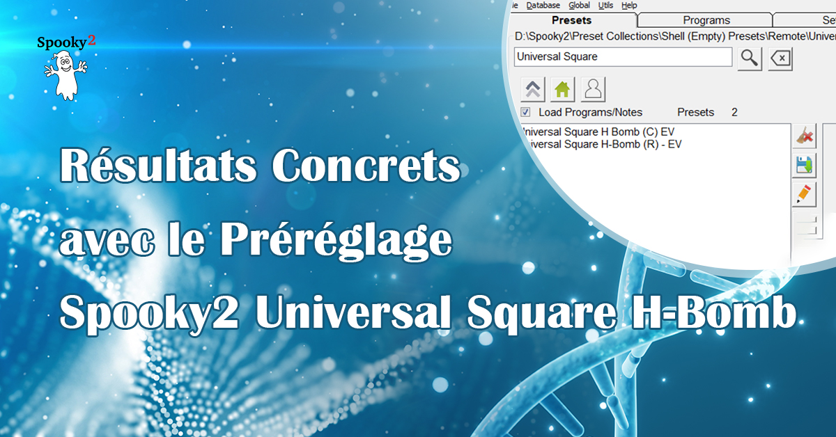 Vous pouvez explorer ce préréglage directement dans le logiciel Spooky2 en allant dans l’onglet Preset → Shell (Empty) Presets → Remote → Universal Square H-Bomb (R) – EV (ou Contact\Universal Square H Bomb (C) EV). Ensuite, recherchez et sélectionnez les programmes que vous souhaitez exécuter, allez dans l’onglet « Control », cochez la case « Overwrite Generator », puis cliquez sur « Start ». Si vous n’avez pas encore le logiciel, il est disponible en téléchargement gratuit ici.