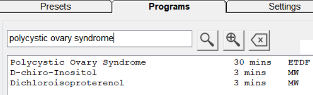 D'autres éléments peuvent également aider à traiter le SOPK. Recherchez PCOS (Polycystic Ovary Syndrome) dans l'onglet « Programs » :