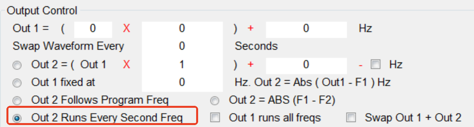 - «Out 2 Runs Every Second Frequency» : cette option permet à Out 2 de gérer une fréquence sur deux, réduisant ainsi le temps d’impression de moitié.