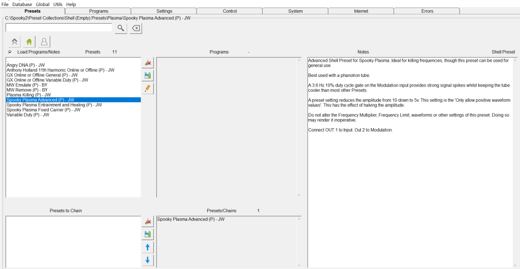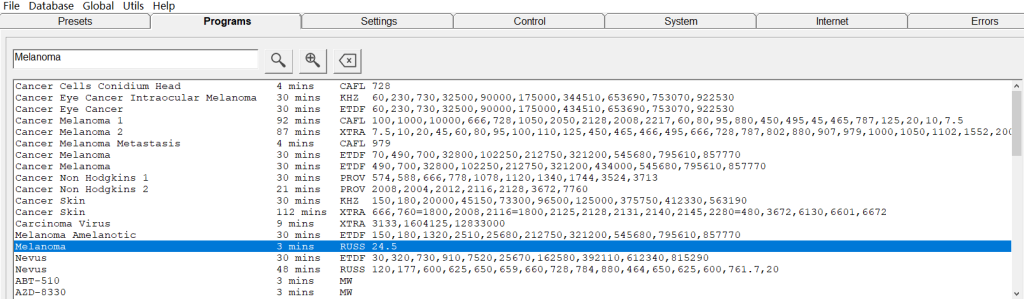Sélectionnez le bon préréglage «Shell/Plasma» sous l’onglet «Preset». Ensuite, allez dans l’onglet «Programs» et recherchez le mot-clé « melanoma » pour trouver des programmes disponibles à charger.