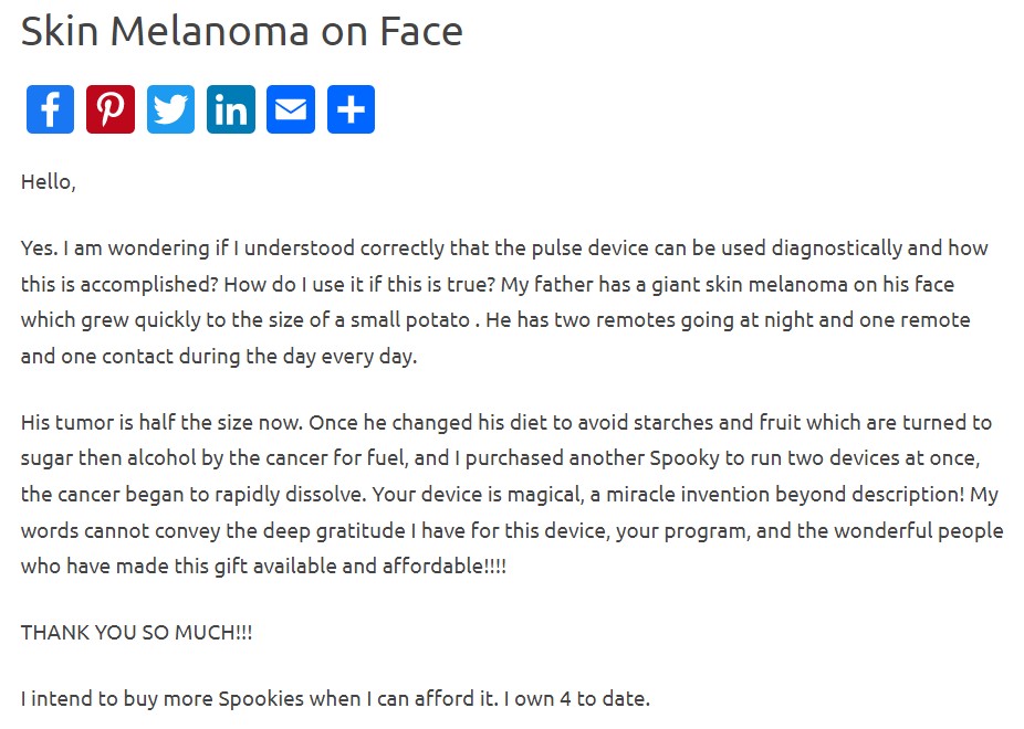 Si vous êtes atteint d’un mélanome et que vous en avez assez du traitement conventionnel, vous devriez absolument essayer le Plasma Spooky2.