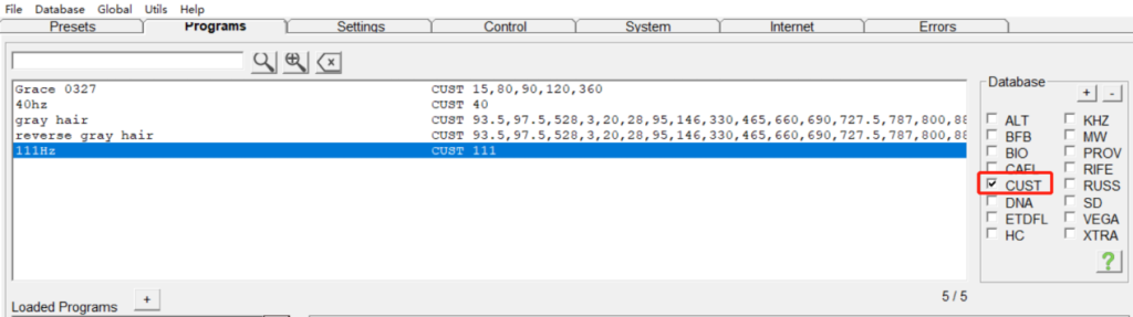 Vous pouvez désormais trouver le programme de 111 Hz dans la base de données personnalisée sous l’onglet Programmes.