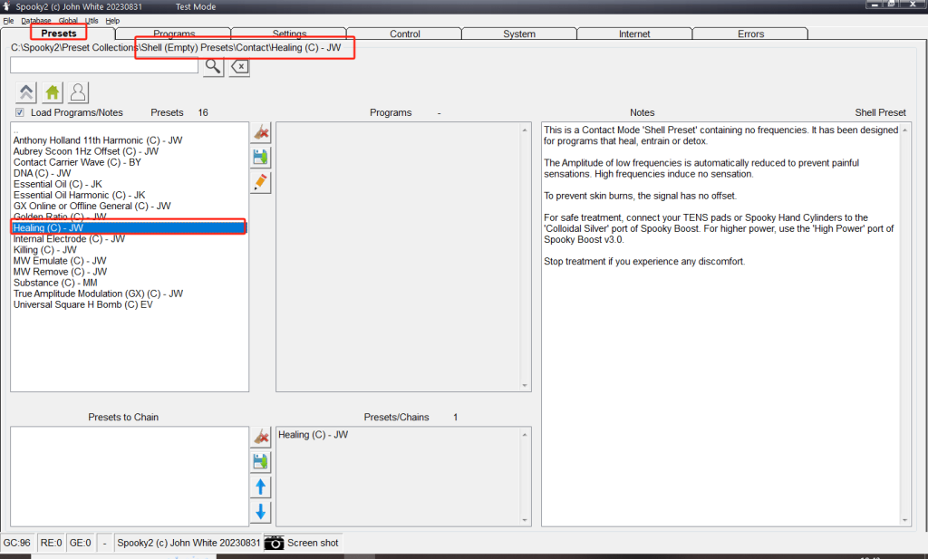 Étape 2 : Allez dans l’onglet «Presets», et choisissez Shell (Empty) Presets > Contact > Healing (C) – JW.