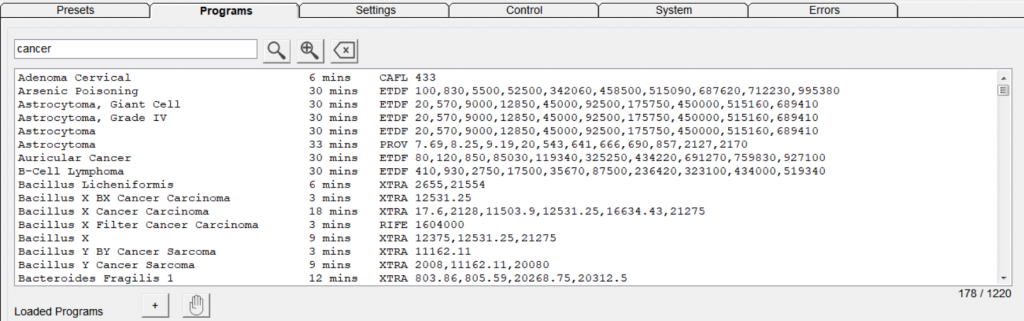 Spooky2 possède le logiciel le plus professionnel et la plus grande base de données de fréquences, comprenant également des préréglages et des programmes pour le cancer.