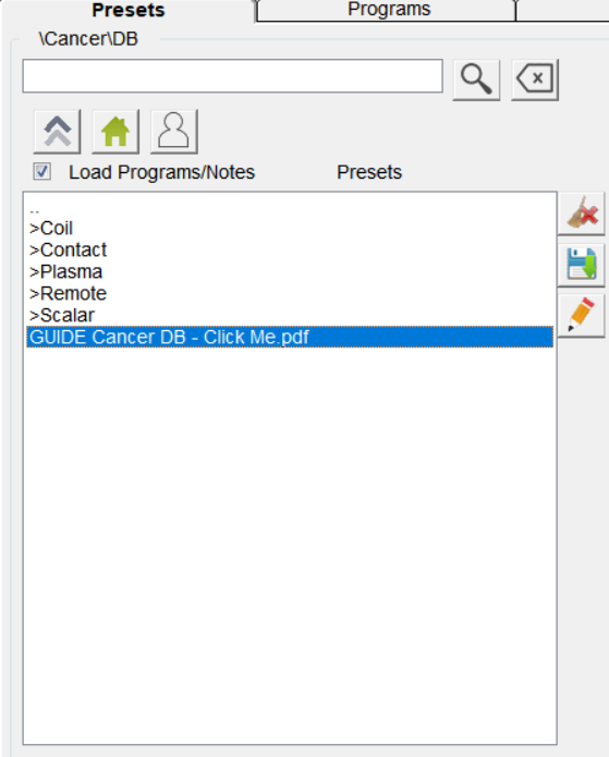 Tout d’abord, Spooky2 dispose d’un protocole spécifique au cancer. Le preset pour le protocole du cancer se trouve dans l’onglet Presets de Spooky2 sous >Cancer, >DB. Il existe également un guide pour vous aider à l’utiliser.
